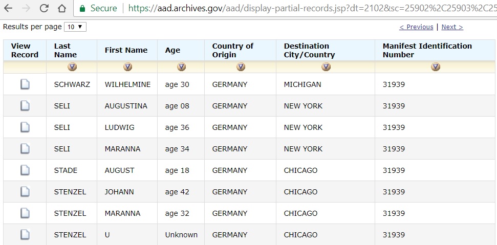 Justification: The National Archives has a database of "Germans to America" where I found a couple of Stenzel families I am interested in. For both families, they list a destination city of Chicago. When I look at the original passenger list on film (series M237) for Johann Stenzel, that fact is NOT included (nor are certain other indexed facts). This suggests that the Germans to America index was created from a more detailed type of record. A baby was born on the voyage of Johann Stenzel and his wife but the baby is not found on the film even at the end of the listing. The Germans to America lists an "unknown" of that surname who I would gather is that baby.
